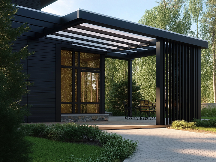 Прежде чем приступить к работам, команда разработала детальную 3D-визуализацию, которая позволила клиенту увидеть будущий навес «вживую» и заранее оценить все ключевые решения: от цветовой гаммы до геометрии конструкции. Благодаря такому подходу проект был полностью согласован до старта монтажа.